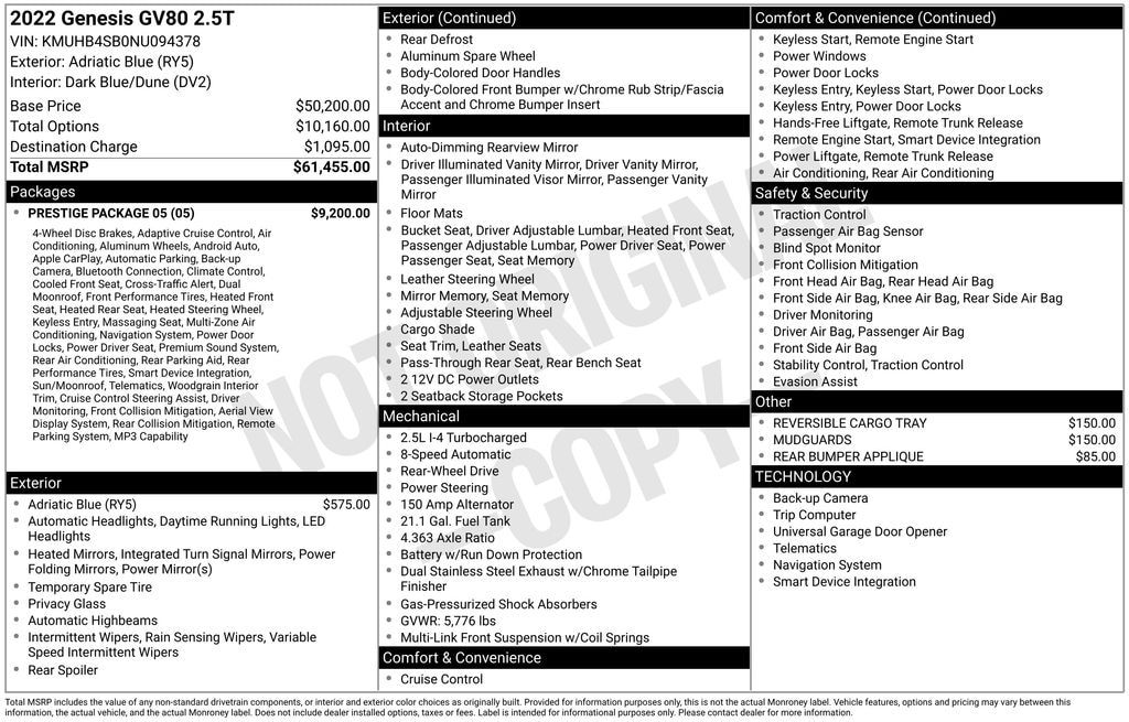 Discover the ultimate in luxury, performance, and safety with this 2022 Genesis GV80 2.5T. Schedule a test drive today and experience the difference for yourself. We're confident you'll be impressed by the exceptional quality and attention to detail that sets this vehicle apart.