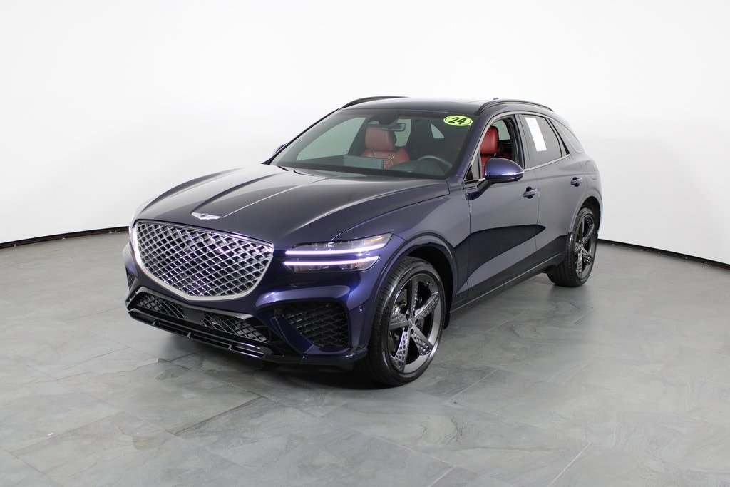 2024 Genesis GV70 3.5T Sport 3.5L DOHC 8-Speed Automatic with SHIFTRONIC AWD 3.5T Sport FACTORY CERTIFIED PRE-OWNED VEHICLE!, CERTIFIED BY CARFAX - NO ACCIDENTS!, CERTIFIED BY CARFAX - ONE OWNER!, REAR VIEW BACK-UP CAMERA!, BLUETOOTH HANDS-FREE CALLING!, HEATED SEATS!, LEATHER SEATS!, NON SMOKER!, PANORAMIC MOONROOF!, GV70 3.5T Sport, 4D Sport Utility, 3.5L DOHC, 8-Speed Automatic with SHIFTRONIC, AWD, Capri Blue, Black/Sevilla Red w/Leather Seating Surfaces w/Mesh Insert.