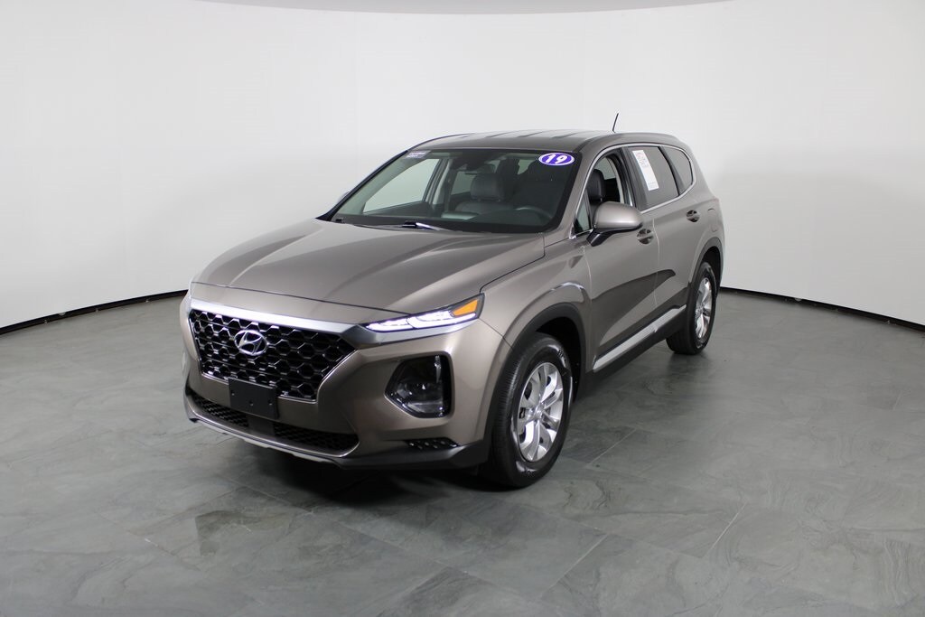 2019 Hyundai Santa Fe SE 2.4L I4 DGI DOHC 16V LEV3-ULEV70 185hp 8-Speed Automatic with SHIFTRONIC FWD SE Odometer is 17265 miles below market average! CERTIFIED BY CARFAX - NO ACCIDENTS!, REAR VIEW BACK-UP CAMERA!, BLUETOOTH HANDS-FREE CALLING!, NON SMOKER!, BLIND SPOT TECHNOLOGY - NEVER WORRY WHEN CHANGING LANES AGAIN!!, LANE DEPARTURE ASSIST!, Santa Fe SE, 4D Sport Utility, 2.4L I4 DGI DOHC 16V LEV3-ULEV70 185hp, 8-Speed Automatic with SHIFTRONIC, FWD, Earthy Bronze, Black/Black w/Stain-Resistant Cloth Seating Surfaces.