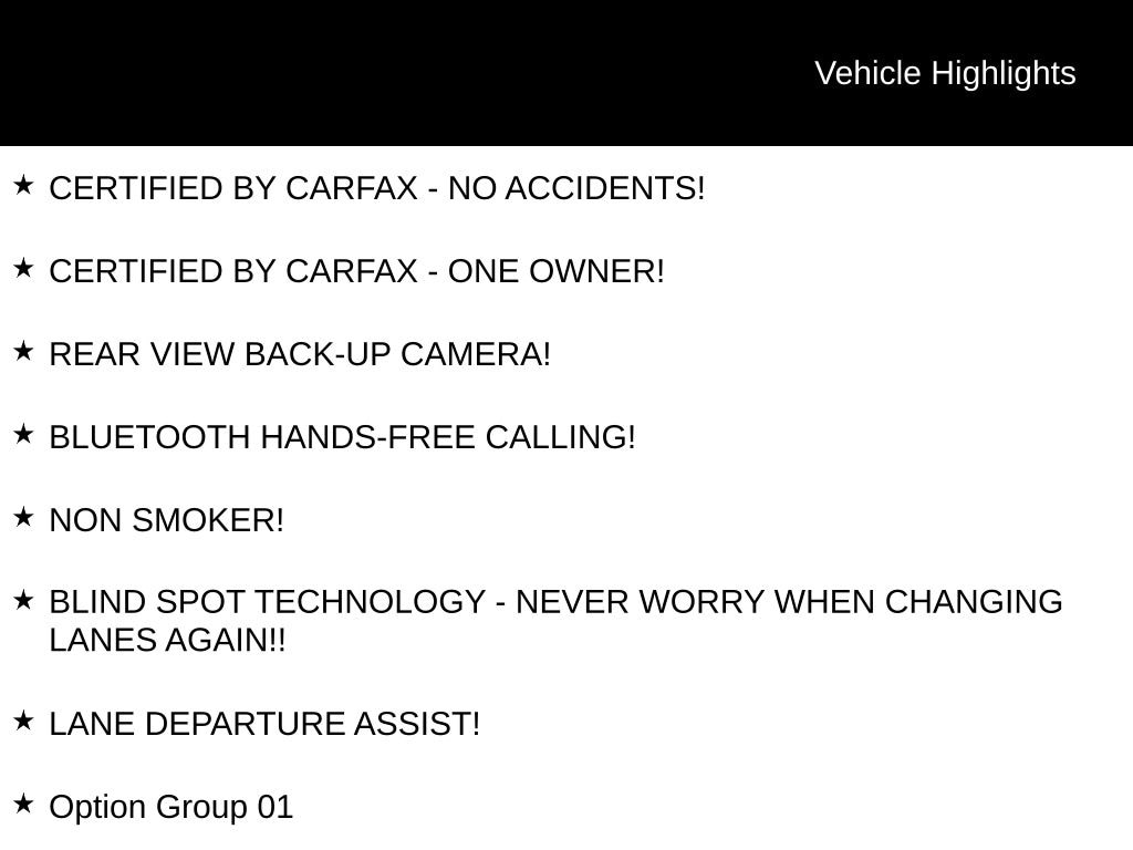 ⢠CERTIFIED BY CARFAX - NO ACCIDENTS!