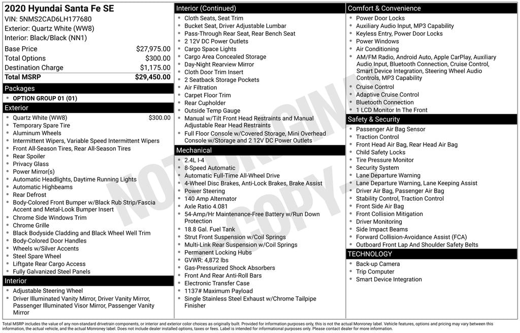 Discover the perfect blend of style, capability, and convenience in this 2020 Hyundai Santa Fe SE. This stunning SUV is ready to elevate your driving experience with its impressive performance, advanced technology, and exceptional comfort.