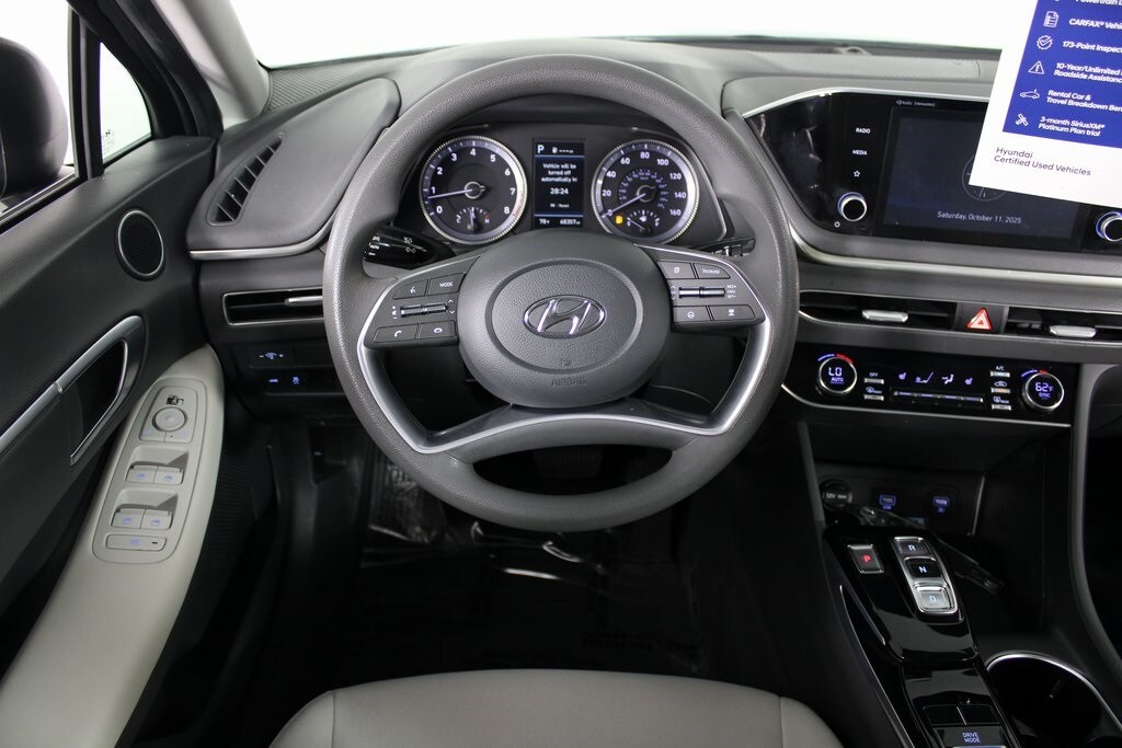2021 Hyundai Sonata SEL 2.5L I4 8-Speed Automatic with Overdrive FWD SEL Odometer is 2994 miles below market average! FACTORY CERTIFIED PRE-OWNED VEHICLE!, CERTIFIED BY CARFAX - ONE OWNER!, REAR VIEW BACK-UP CAMERA!, BLUETOOTH HANDS-FREE CALLING!, NON SMOKER!, LANE DEPARTURE ASSIST!, Sonata SEL, 4D Sedan, 2.5L I4, 8-Speed Automatic with Overdrive, FWD, Phantom Black, Dark Gray w/Premium Cloth Seating Surfaces.