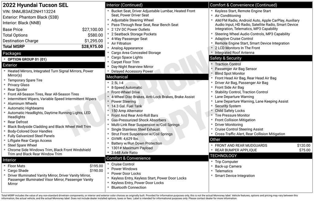 The Tucson SEL's powerful 2.5L I4 DGI DOHC 16V engine, paired with an 8-Speed Automatic with SHIFTRONIC transmission, delivers an impressive 187 horsepower and an exceptional fuel efficiency of 26 city/33 highway MPG. Whether you're navigating the daily commute or embarking on a weekend adventure, this SUV is ready to take you there with confidence and style.