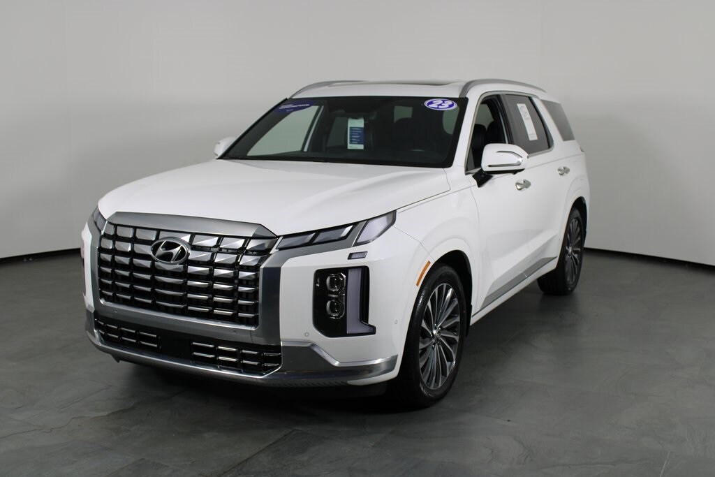 2023 Hyundai Palisade Calligraphy V6 8-Speed Automatic with SHIFTRONIC FWD Calligraphy FACTORY CERTIFIED PRE-OWNED VEHICLE!, CERTIFIED BY CARFAX - NO ACCIDENTS!, CERTIFIED BY CARFAX - ONE OWNER!, REAR VIEW BACK-UP CAMERA!, BLUETOOTH HANDS-FREE CALLING!, 3RD ROW SEATING!, HEATED SEATS!, LEATHER SEATS!, NON SMOKER!, POWER MOONROOF/SUNROOF!, Palisade Calligraphy, 4D Sport Utility, V6, 8-Speed Automatic with SHIFTRONIC, FWD, Hyper White, Black w/Leather Seat Trim.