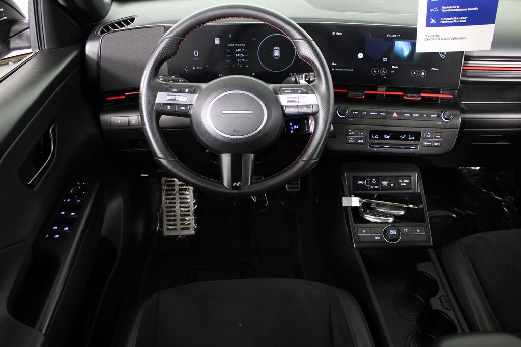 2024 Hyundai Kona N Line I4 8-Speed Automatic FWD N Line FACTORY CERTIFIED PRE-OWNED VEHICLE!, CERTIFIED BY CARFAX - NO ACCIDENTS!, CERTIFIED BY CARFAX - ONE OWNER!, REAR VIEW BACK-UP CAMERA!, BLUETOOTH HANDS-FREE CALLING!, HEATED SEATS!, LEATHER SEATS!, NON SMOKER!, POWER MOONROOF/SUNROOF!, Kona N Line, 4D Sport Utility, I4, 8-Speed Automatic, FWD, Abyss Black Pearl, Black w/H-Tex Leatherette Seat Trim.
