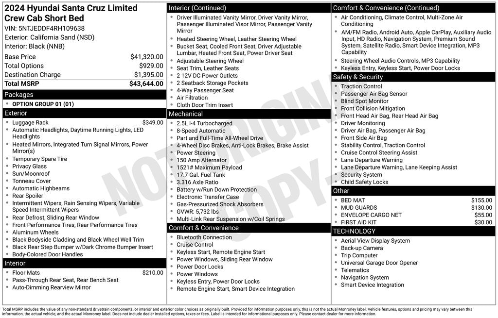 2024 Hyundai Santa Cruz Limited 2.5L I4 Shiftronic AWD Limited