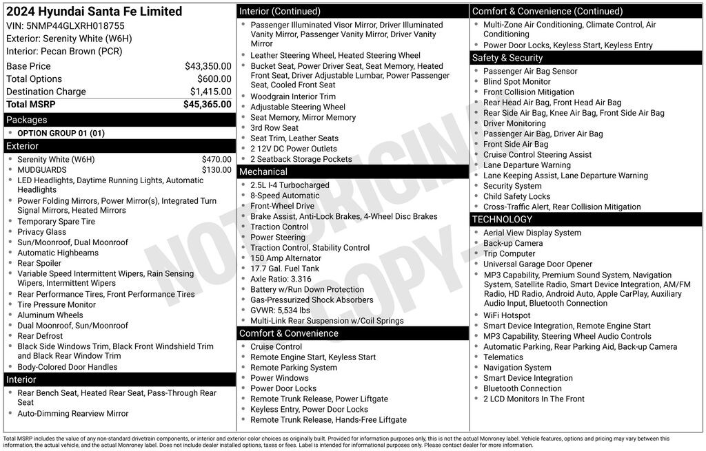 Discover the perfect blend of style, performance, and technology in this 2024 Hyundai Santa Fe Limited. Schedule a test drive today and experience the difference for yourself. We're confident you'll be impressed by this exceptional SUV.