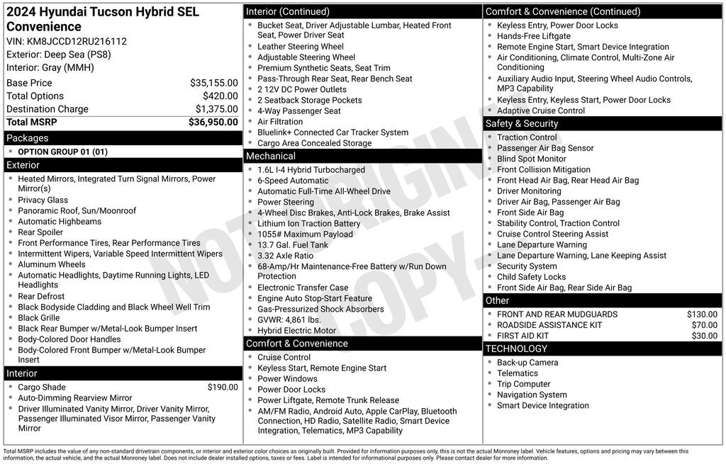 2024 Hyundai Tucson Hybrid SEL Convenience I4 6-Speed Automatic AWD SEL Convenience