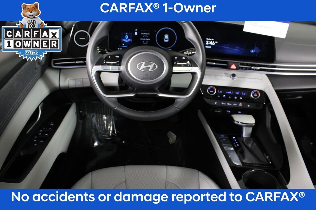 Step inside and be captivated by the Elantra's sophisticated cabin, featuring premium leather-wrapped seating, dual-zone automatic climate control, and a state-of-the-art infotainment system with Apple CarPlay and Android Auto integration. The power moonroof and heated front seats add an extra touch of luxury, while the rear-view camera and Bluetooth connectivity ensure your drives are both convenient and safe.