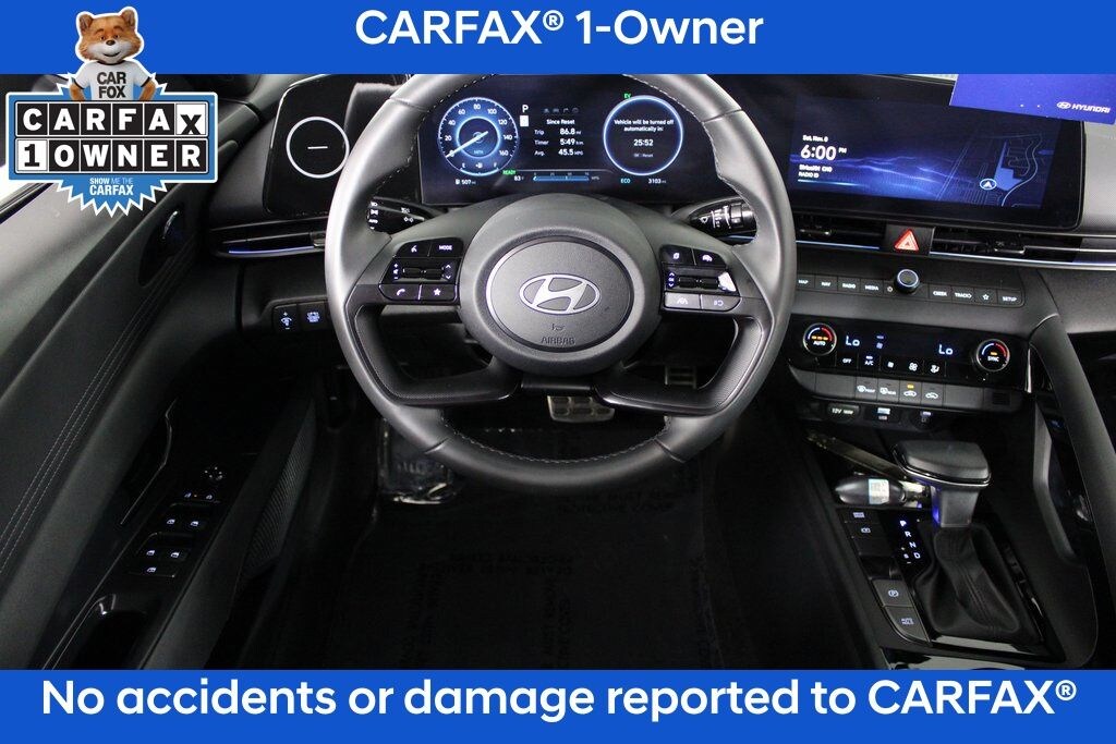 2025 Hyundai Elantra Hybrid SEL Sport I4 6-Speed Dual Clutch FWD SEL Sport Odometer is 1140 miles below market average! FACTORY CERTIFIED PRE-OWNED VEHICLE!, CERTIFIED BY CARFAX - NO ACCIDENTS!, CERTIFIED BY CARFAX - ONE OWNER!, REAR VIEW BACK-UP CAMERA!, BLUETOOTH HANDS-FREE CALLING!, NON SMOKER!, Elantra Hybrid SEL Sport, 4D Sedan, I4, 6-Speed Dual Clutch, FWD, Amazon Gray, Black w/Premium Cloth Seat Trim.
