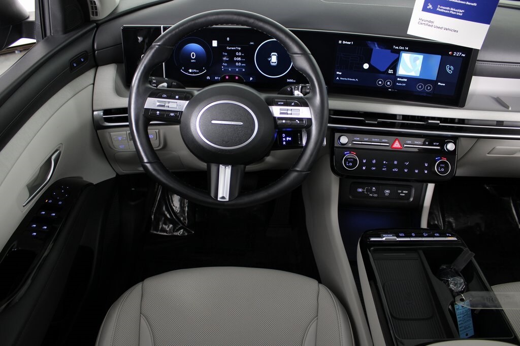 2025 Hyundai Tucson Limited 2.5L I4 DGI DOHC 16V LEV3-SULEV30 187hp 8-Speed Automatic with SHIFTRONIC FWD Limited Odometer is 2579 miles below market average! FACTORY CERTIFIED PRE-OWNED VEHICLE!, CERTIFIED BY CARFAX - NO ACCIDENTS!, REAR VIEW BACK-UP CAMERA!, BLUETOOTH HANDS-FREE CALLING!, HEATED SEATS!, LEATHER SEATS!, NON SMOKER!, PANORAMIC MOONROOF!, Tucson Limited, 4D Sport Utility, 2.5L I4 DGI DOHC 16V LEV3-SULEV30 187hp, 8-Speed Automatic with SHIFTRONIC, FWD, Phantom Black, Gray w/Leather-Trimmed Seat Trim.