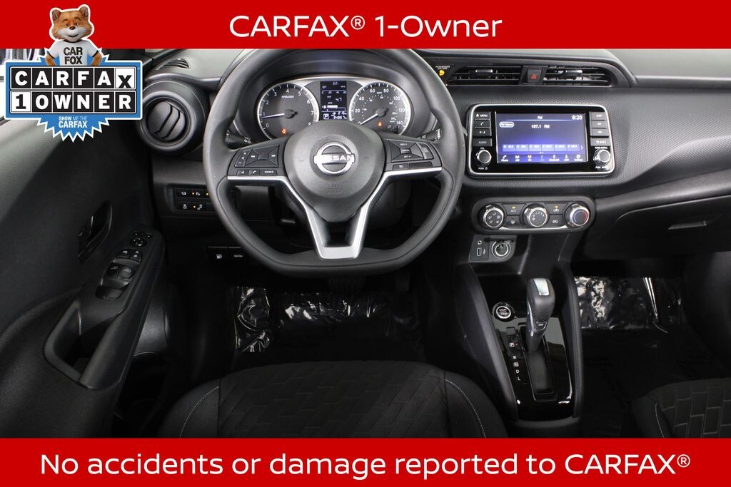 Boasting a sleek white exterior, the Kicks S commands attention on the road. Dive into the impressive list of features that set this vehicle apart: