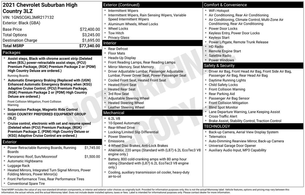 Elevate your driving experience with this exceptional 2021 Chevrolet Suburban High Country. This full-size SUV combines unparalleled capability, refined luxury, and cutting-edge technology to deliver a truly remarkable driving experience.
