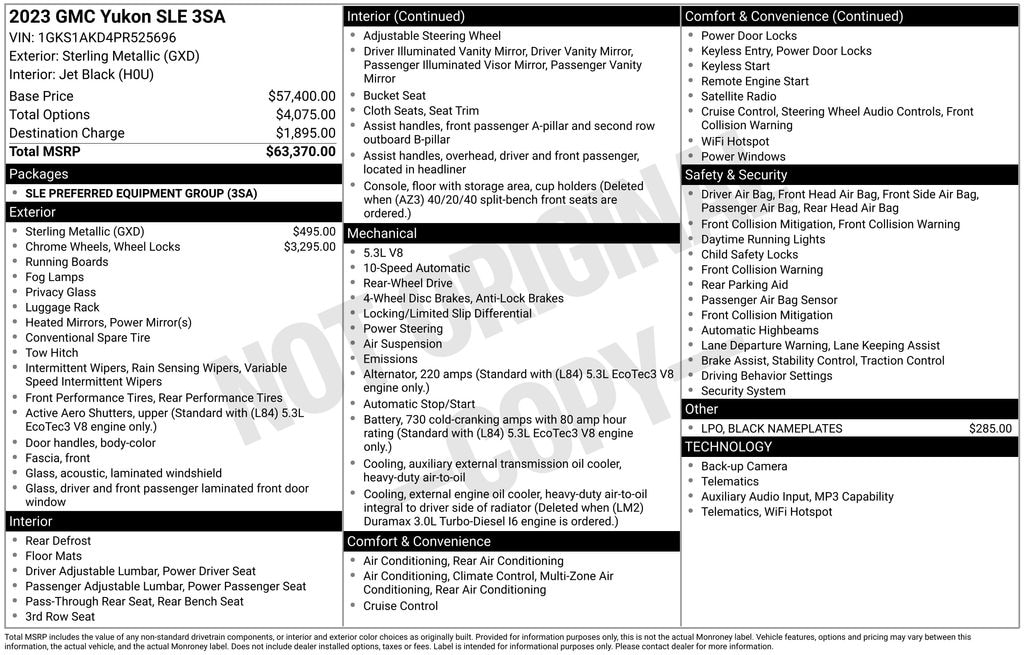 2023 GMC Yukon SLE EcoTec3 5.3L V8 10-Speed Automatic with Overdrive RWD SLE