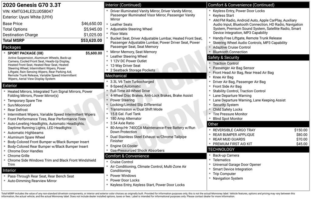 Used 2020 GenesisG70