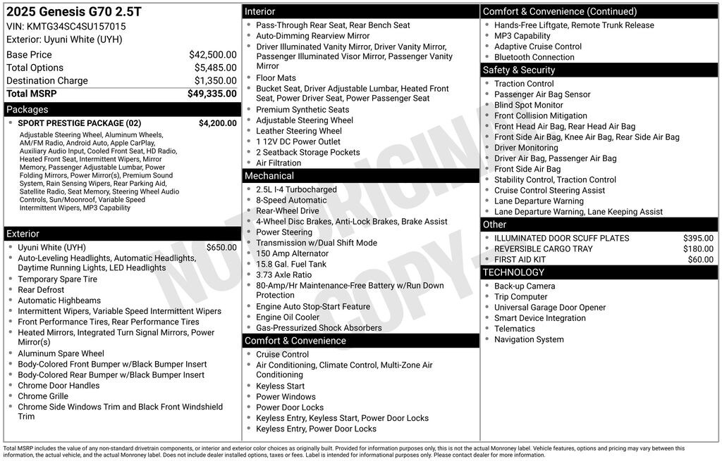 I looked around at lots of cars before settling on a G70 2.0T Elite. I take my time looking at equivalent options from BMW, Audi, Lexus, Alfa Romeo and others and the G70 was the best value in my opinion. You get a car that looks very good, is not commonly seen and that has all the options you could wish for together with an excellent 4cyl engine that likes to be pushed. It does not have the image or brand awareness of those prestige brands I mentioned but it's getting there. Genesis build a quality car !…