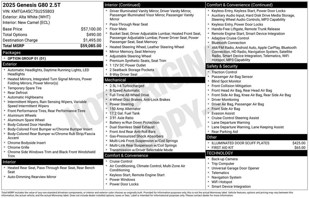 Introducing the 2025 Genesis G80 2.5T - a captivating blend of sophistication, performance, and uncompromising quality. This factory certified pre-owned vehicle is a true testament to the brand's commitment to excellence, offering an exceptional driving experience tailored to your discerning tastes.
