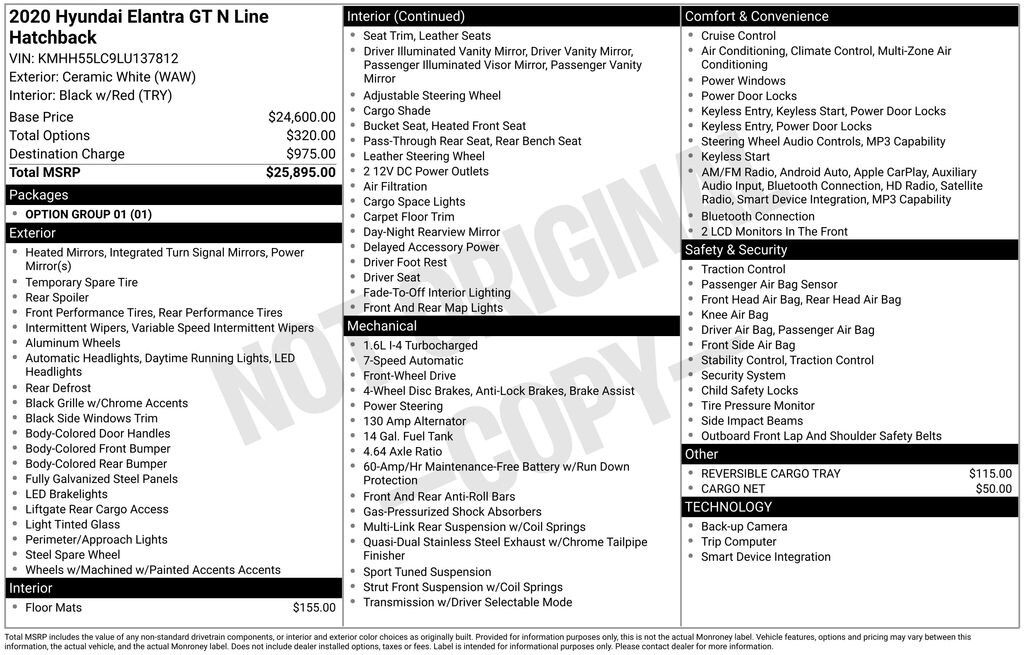 2020 Hyundai Elantra GT N Line I4 Shiftronic FWD N Line Odometer is 16051 miles below market average!