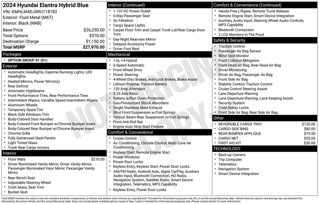 2024 Hyundai Elantra Hybrid Blue I4 6-Speed Dual Clutch FWD Blue