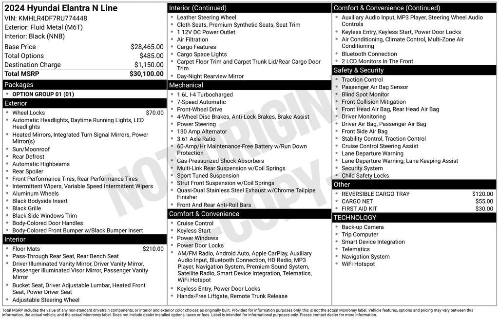 Under the hood, the Elantra N Line boasts a 1.6-liter turbocharged I4 engine paired with a 7-speed dual-clutch transmission, delivering an impressive 201 horsepower and 195 lb-ft of torque. This potent powertrain, combined with the vehicle's sport-tuned suspension and steering, ensures a dynamic and engaging driving experience that will leave you craving the open road.