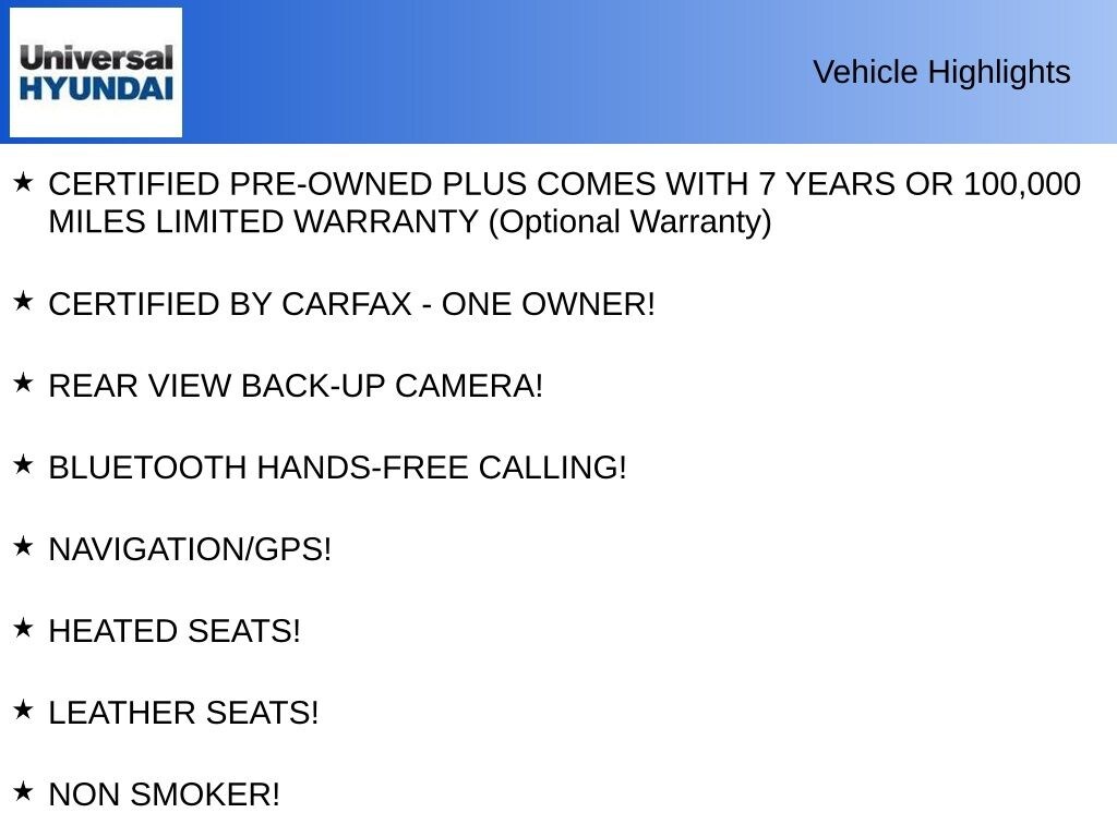 - CERTIFIED PRE-OWNED PLUS with a 7-year or 100,000-mile limited warranty
