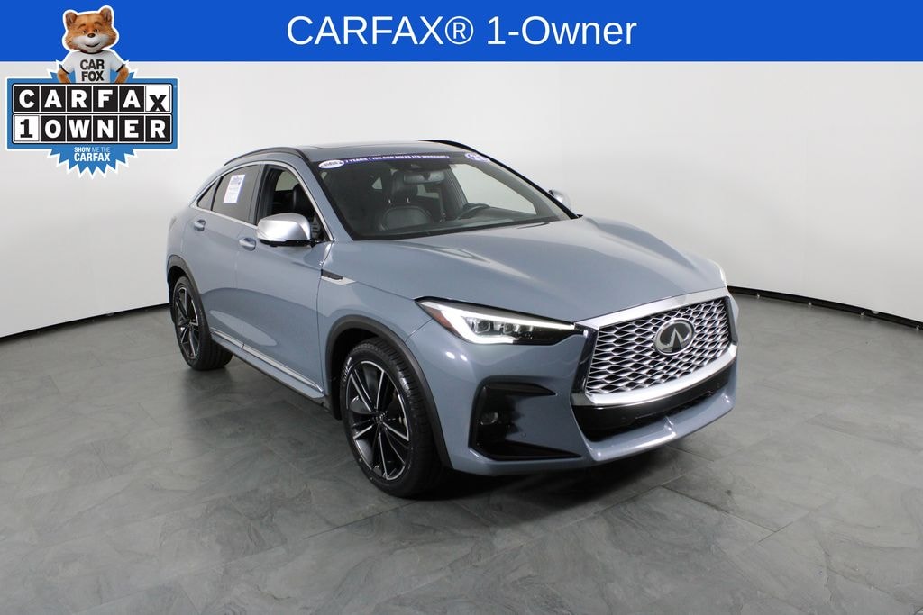 Meticulously maintained and backed by a CARFAX one-owner report, this QX55 ESSENTIAL is a true gem. Adorned in a sleek Gray exterior, it commands attention wherever it goes. Step inside and be enveloped in the refined elegance of the cabin, where premium materials and thoughtful craftsmanship create an atmosphere of unparalleled sophistication.