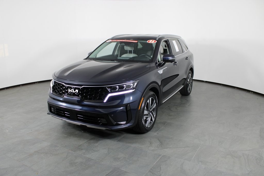 2023 Kia Sorento Hybrid SX Prestige 1.6L I4 DGI Hybrid Turbocharged DOHC 16V LEV3-ULEV70 6-Speed Automatic AWD SX Prestige CERTIFIED PRE-OWNED PLUS COMES WITH 7 YEARS OR 100,000 MILES LIMITED WARRANTY (Optional Warranty), CERTIFIED BY CARFAX - NO ACCIDENTS!, CERTIFIED BY CARFAX - ONE OWNER!, REAR VIEW BACK-UP CAMERA!, BLUETOOTH HANDS-FREE CALLING!, HEATED SEATS!, NON SMOKER!, LANE DEPARTURE ASSIST!, Sorento Hybrid SX Prestige, 4D Sport Utility, 1.6L I4 DGI Hybrid Turbocharged DOHC 16V LEV3-ULEV70, 6-Speed Automatic, AWD, Gravity Blue, Black w/SynTex Artificial Leather Seat Trim.