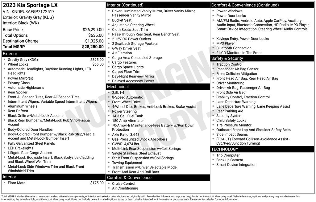 2023 Kia Sportage LX I4 8-Speed Automatic FWD LX Odometer is 5052 miles below market average!
