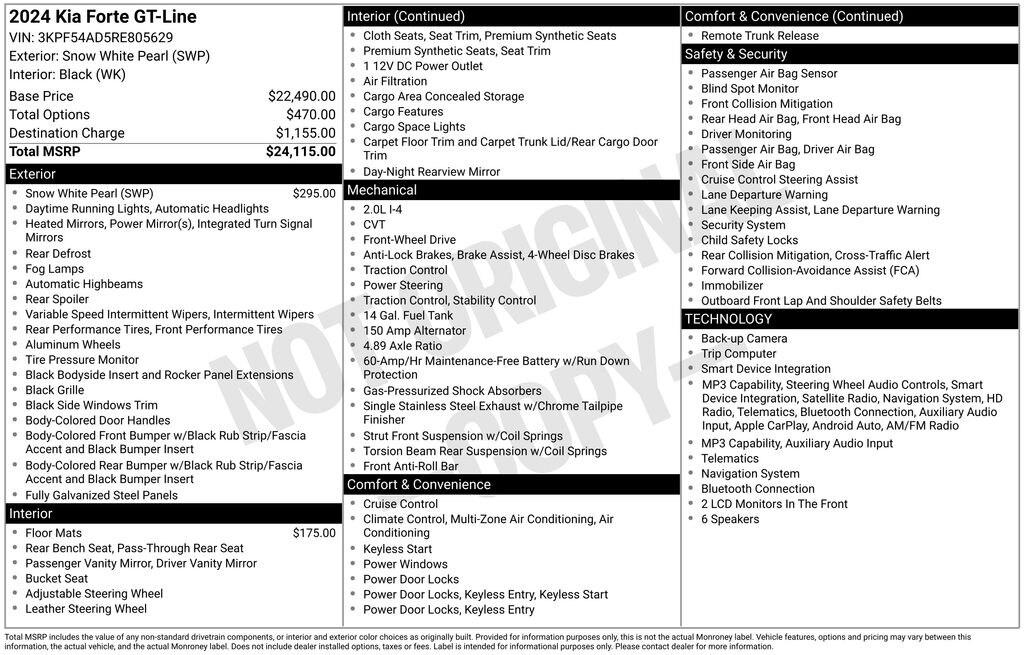 Experience the epitome of modern automotive design and performance with the captivating 2024 Kia Forte GT-Line. This exceptional compact sedan combines style, technology, and efficiency to elevate your daily driving experience.