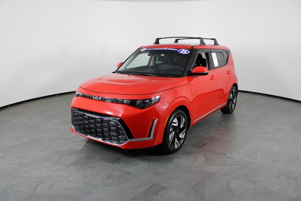 2025 Kia Soul GT-Line 2.0L I4 DOHC CVT FWD GT-Line Odometer is 2512 miles below market average! CERTIFIED PRE-OWNED PLUS COMES WITH 7 YEARS OR 100,000 MILES LIMITED WARRANTY (Optional Warranty), CERTIFIED BY CARFAX - NO ACCIDENTS!, CERTIFIED BY CARFAX - ONE OWNER!, REAR VIEW BACK-UP CAMERA!, BLUETOOTH HANDS-FREE CALLING!, NON SMOKER!, POWER MOONROOF/SUNROOF!, Soul GT-Line, 4D Hatchback, 2.0L I4 DOHC, CVT, FWD, Inferno Red, Black w/Cloth/SynTex Seat Trim.