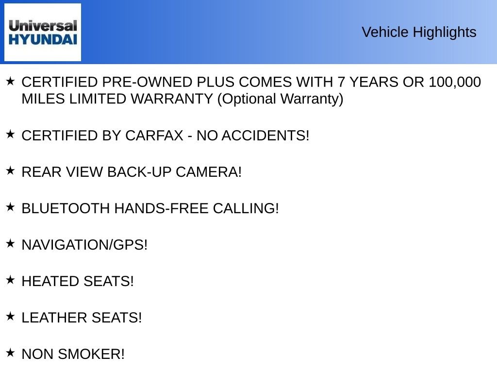 - CERTIFIED PRE-OWNED PLUS COMES WITH 7 YEARS OR 100000 MILES LIMITED WARRANTY (Optional Warranty)