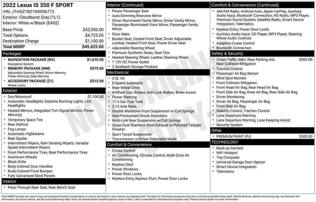 This 2022 Lexus IS 350 F SPORT is a true standout in the luxury sedan segment, blending exceptional performance, cutting-edge technology, and timeless design. Experience the difference for yourself - schedule a test drive today and discover the joy of driving this remarkable vehicle.