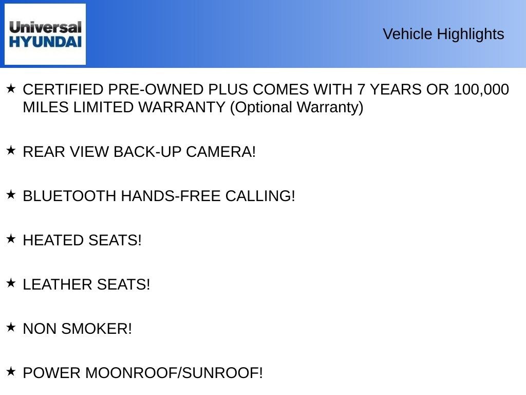 - CERTIFIED PRE-OWNED PLUS COMES WITH 7 YEARS OR 100,000 MILES LIMITED WARRANTY (Optional Warranty)