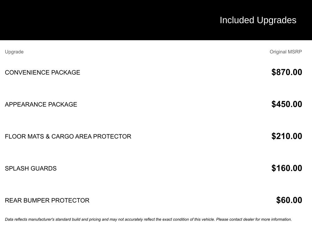 - Floor Mats & Cargo Area Protector$210