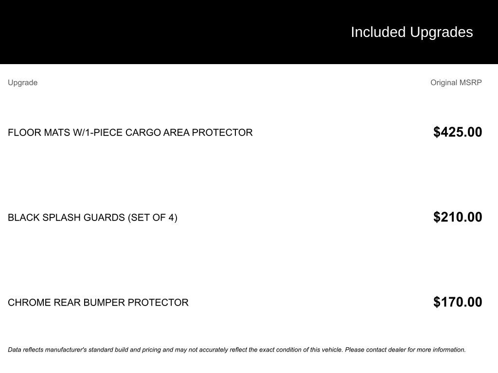 *All pricing plus tax, tag, title and $1,198 dealer fee. Price subject to change. Offers cannot be combined. Not valid on prior purchase. To ensure ePrice, print and present upon arrival or call to secure your savings, speak with our Director on Jake, Johnathan or Guillermo at (689) 220-0948. Please check with dealer to confirm options and pricing on your vehicle of interest prior to your visit as some may not be listed correctly. All pricing reflects rebates, programs and incentives available in the dealers zip code 32837.