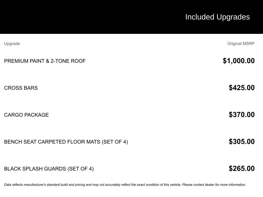 *All pricing plus tax, tag, title and $1,198 dealer fee. Price subject to change. Offers cannot be combined. Not valid on prior purchase. Please check with dealer to confirm options and pricing on your vehicle of interest prior to your visit as some may not be listed correctly. All pricing reflects rebates, programs and incentives available in the dealers zip code 32837.