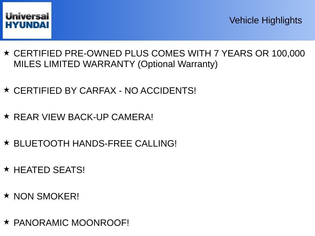 - CERTIFIED PRE-OWNED PLUS COMES WITH 7 YEARS OR 100000 MILES LIMITED WARRANTY (Optional Warranty)
